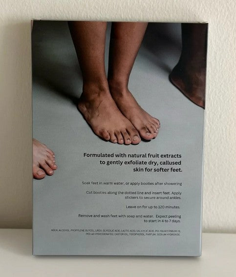 Exfoliating Foot Peel booties are pre-filled with an infusion of gently exfoliating liquids, moisturizers, and skin conditioners to renew, and resurface. Packaged for retail sale, each kit contains two single-use booties for home use. Clients can expect results within two four days following treatment, though their feet may continue to peel and improve for up to a week. Suitable for men and women, booties are one size only.